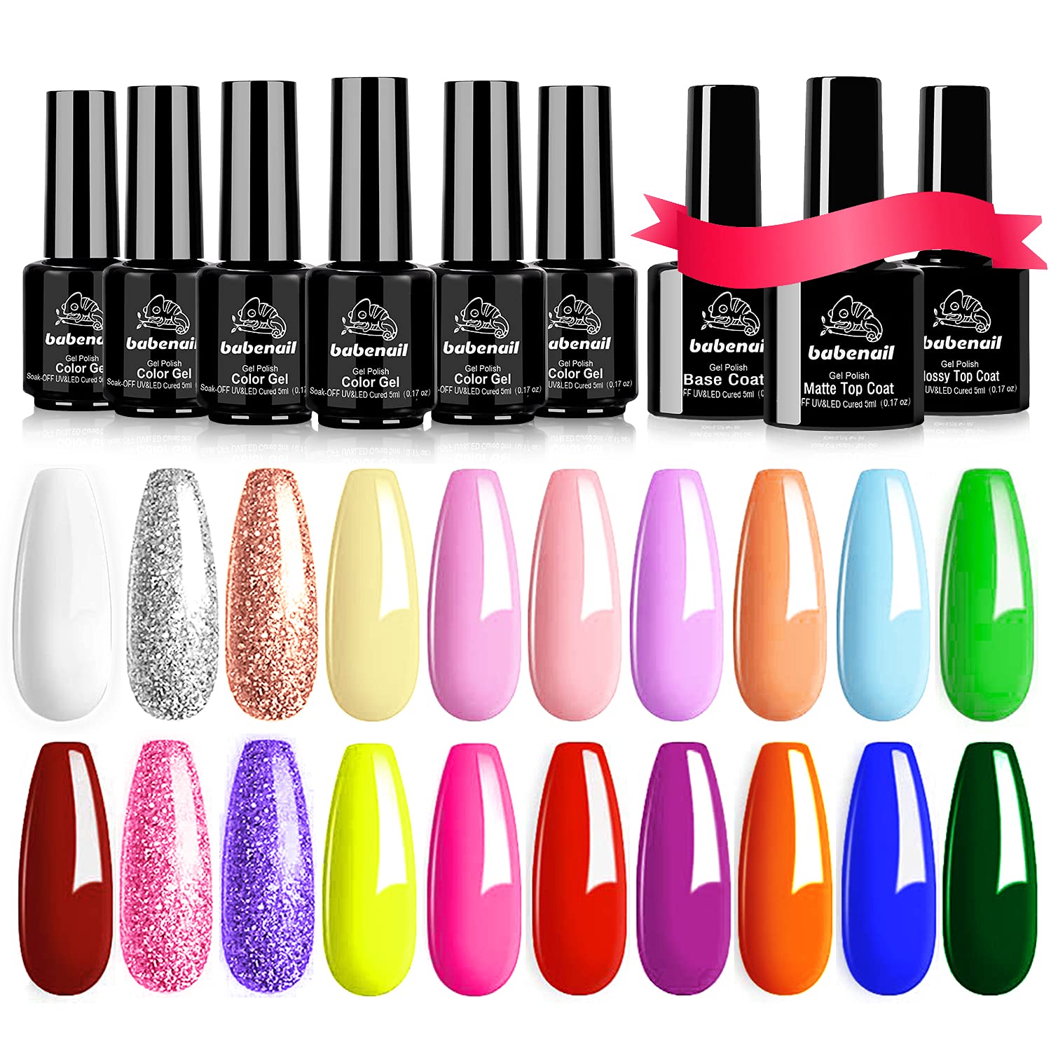 Buy Babenail 20 Colors Gel Nail Polish Kit Soak Off Uv Led 21 Days Long Lasting Orange Pink Glitter Gel Polish 3 Base Top Coat Glossy Matte Top Coat And Base